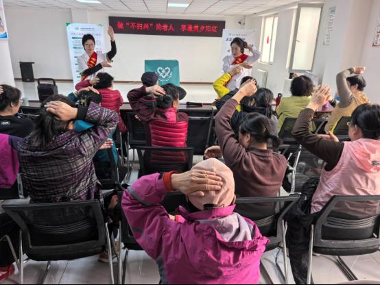 在讲座结束后,老年心理关爱行动志愿者带领居民们开展了“听口令找数字”、“清肺操”等心理健康促进活动。这些趣味互动既锻炼了老年人的专注力、反应力和记忆力,又在轻松愉快的氛围中让大家舒展身心、释放情绪,提升了心理幸福感。现场气氛热烈,笑声与掌声不断,一位参与的居民表示:“这样的活动既有知识又有趣味,既锻炼身体又让心情变好,希望以后能多开展。”
