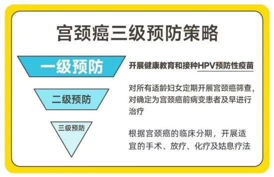 宫颈癌是女性常见的恶性肿瘤,发病率在女性生殖系统恶性肿瘤中排名第一,严重危害生命健康。世界卫生组织将我国的预防宫颈癌策略分为三级,其中一级预防包括:接种HPV疫苗;二级预防包括:对宫颈癌进行筛查;三级预防包括:对宫颈癌患者进行规范化治疗。