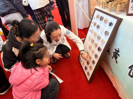 互动体验区则成为亲子打卡的热门场地。投壶挑战区里,孩子们踮着脚尖投掷箭矢,家长在一旁指导鼓劲,欢声笑语不断;中药DIY区,小朋友们在医师的指导下,认真地研磨药材、制作药锤和香囊,“妈妈,我做的香囊能驱寒,以后每天都带着!”一位8岁的小女孩举着亲手制作的香囊,骄傲地向妈妈展示;“中医药印章打卡”桌前,家长带着孩子近距离观察中药材标本,在趣味打卡中解锁中医药知识,让传统中医药文化以接地气的方式走进大众生活,实现了知识传播与互动体验的巧妙融合。