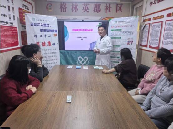 为进一步做好2025年健康科普主题宣传工作,开展“普及健康知识,共创健康沈阳”老年心理关爱主题活动,11月24日,沈阳市精神卫生中心联合浑南区浑河站东社区卫生服务中心走进格林英郡社区,组织开展了一场面向老年群体的心理关爱与健康促进活动。本次活动旨在通过多样化的讲座与互动体验,提高社区老年人对心理健康问题的识别能力,帮助其提升身心健康水平,营造关爱长者、关注心理健康的社会氛围。