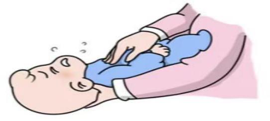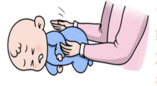 2.动作:用手掌根在婴儿背部两肩胛骨之间,快速有力向前(朝头部)叩击5次,力度以尝试排出异物为准。