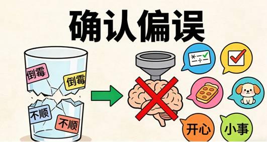 这种心理背后,藏着两种常见的认知习惯。首先是“锚定效应”:早晨的意外就像一个“负面标签”,先入为主地给一整天定了调。就像看电影时先被剧透了负面评价,再看剧情就容易带着偏见挑问题,我们带着“今天不顺”的预设,自然会对后续的事情更敏感。接着是“确认偏误”:大脑天生有“选择性记忆”的倾向,会自动过滤掉顺利的细节,比如买早餐刚好不用排队、同事主动搭把手、地铁一路畅通,这些都被悄悄忽略;但对小挫折却格外“上心”,把赶不上车、学习工作中的一些小失误这些偶然事件,都强行归因为“打碎杯子的预兆”,越关注就越觉得“果然如此”,形成恶性循环。