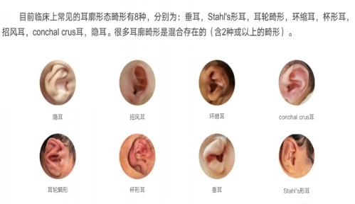 正常的耳廓是一个轮廓清晰的饱满的”C”型,有卷曲的耳轮,和平行突起的对耳轮,以及中间凹陷的耳舟,包括耳轮脚、耳屏都应该在自己正确的位置上,但凡其中一个部位错位了,都会造成耳廓畸形。