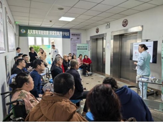 活动现场,甘宇主任、陈颖护士长开展了健康宣教。甘主任表示:我国2型糖尿病合并慢性肾脏病的发病率高达36%。糖尿病肾病是引发慢性肾脏病的主要原因,并且糖尿病足与糖尿病肾病堪称糖尿病并发症中的“难兄难弟”。在临床实践中我们发现,患有糖尿病肾病的患者更易患上糖尿病足;而在糖尿病足患者中,肾脏功能往往也欠佳。这是因为二者并非相互独立的疾病,而是同一根神经、血管在不同器官、不同病变位置的体现。若糖足感染得不到控制,产生的毒素会直接损害肾脏;而肾脏无法排出毒素,二者会相互加重病情,最终导致脚部和肾脏都出现病变。这种通俗易懂的宣教引起了在场患者的共鸣。接地气的内容引起患者及家属积极热情的参与,认真仔细的学习,活动结束后意犹未尽,纷纷表示,在这里不仅治好了脚病,还学到了专业的糖尿病足、糖尿病肾病相关知识,他们也明白了,不仅要重视足部疾病,更要关注自身的肾脏健康,通过本次宣教,患者们对糖尿病足与糖尿病肾病之间的紧密联系有了更深刻的认识。他们了解到,积极预防和控制糖尿病足感染对于保护肾脏功能至关重要,同时,关注肾脏健康也能有效减少糖尿病足的发生风险。这种全面的健康宣教方式,不仅提升了患者的自我管理能力,也为他们今后的健康生活提供了有力的指导。