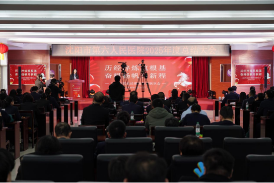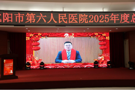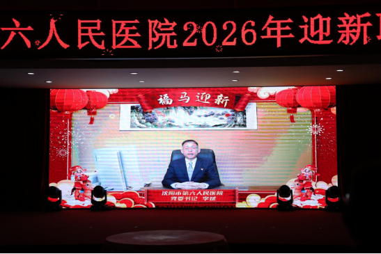 2026年2月10日下午,沈阳市第六人民医院召开2025年度总结表彰大会暨2026年迎新春联欢会,院班子全体成员、护士长以上实职中层干部参加会议。大会对2025年度涌现的一批先进团体、个人进行了表彰。徐进院长视频致新春贺辞,李晶副院长主持会议。
