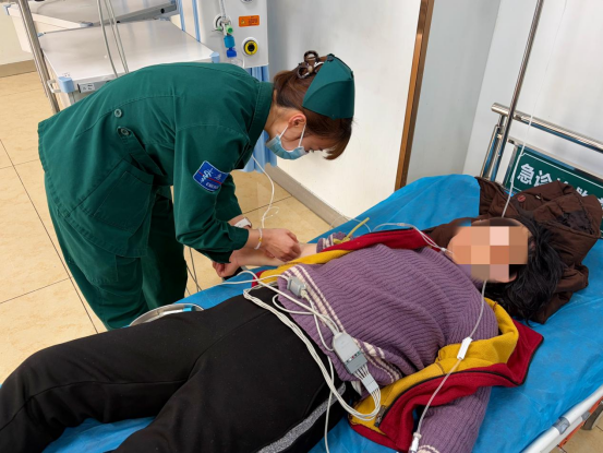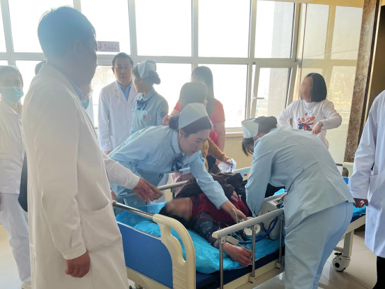 面对危急情况,医护人员分工协作、有条不紊,每一个动作都精准高效,每一次处置都争分夺秒,在生死边缘与时间展开激烈赛跑。在初步稳定患者生命体征后,纪主任立即联系相关科室,安排专人护送,开通急救绿色通道,以最快速度将患者安全转运至急诊科接受后续治疗。
