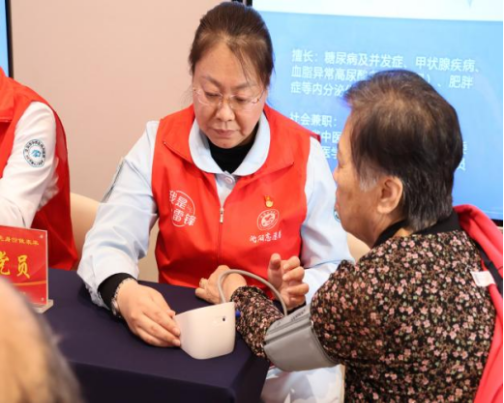 与此同时,皮肤科三病房护士长林英和肾内科护士长佟菲有条不紊地为老人们测量血压,仔细记录数据,提醒其注意饮食、规律作息,并告知后续监测和就医的注意事项,用专业细致的服务让老人们感受到浓浓的关怀。宣传科副科长齐红梅为老人们发放健康知识手册,并针对有就医需求的老人,详细介绍了我院就医流程、便民服务措施,让老人们对如何方便快捷地获得医疗服务有了更清晰地了解。